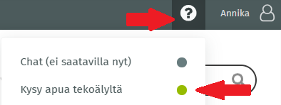Yhdistysavaimen asiakkaiden käytettävissä on tekoälyapuri, joka osaa vastata palvelun käyttöön liittyviin kysymyksiin. Tekoälyapuri on käytettävissä maksutta ympäri vuorokauden. Löydät sen sivustollesi kirjautuneena yläpalkin ?-merkin takaa.